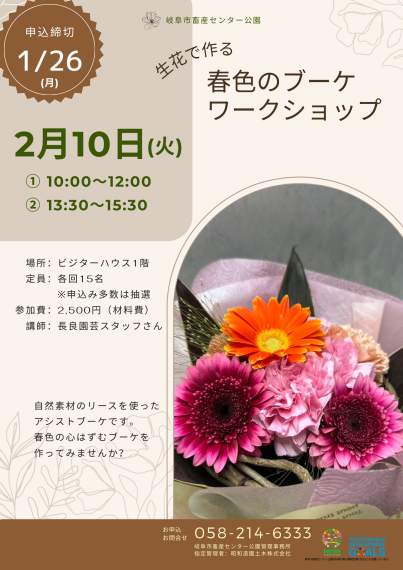 『2月10日(火) 生花で作る春色のブーケワークショップ』参加募集のお知らせ!